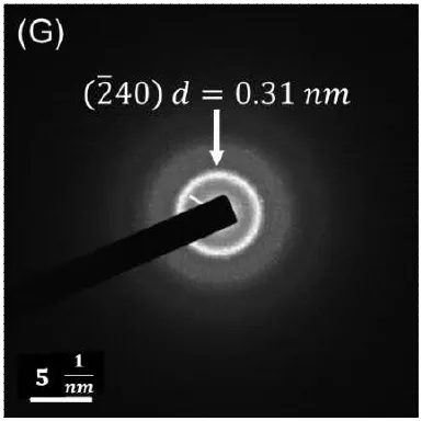 圖F為一個典型的砂磨后的Ta-LLZO顆粒的STEM照片。經(jīng)過砂磨的細顆粒表面較為粗糙,對其中白色虛線框標記的區(qū)域做選區(qū)電子衍射(SAED),結(jié)果如圖G所示。電子衍射花樣為展寬明顯的多晶德拜環(huán),最亮的環(huán)對應于晶面間距為0.31nm的(240)面。該面間距比純Ta-LLZO粉體和H+交換后的Ta-LLZO晶格中的數(shù)值大。說明砂磨后的細Ta-LLZO顆粒表面和內(nèi)部晶格變形并多晶化。圖H為顆粒表面的HRTEM原子排列圖像。該圖像表明,Ta-LLZO在極小的疇區(qū)內(nèi)(1~2nm)有序排列,但不同疇區(qū)的排列完全是無序的,進一步證實了砂磨顆粒的多晶化,利于后續(xù)燒結(jié)。