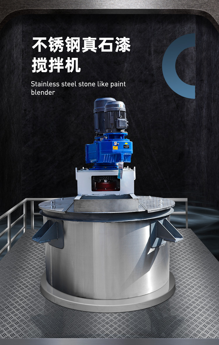 真石漆攪拌機(jī)對(duì)中高粘度及觸變性物料具有良好的適應(yīng)性。適用于各種物料的攪拌、溶解分散和配色,尤其適用于批量真石漆生產(chǎn)。